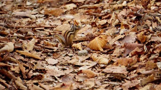 갈잎이 수북한 능선길에서 만난 귀요미는 다람쥐 둘(2)입니다.