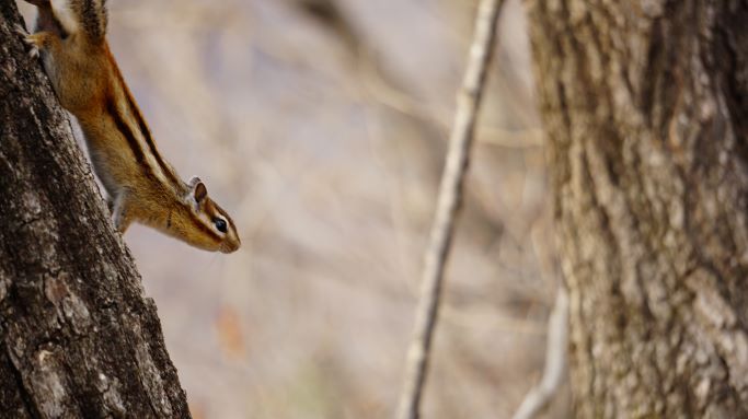 방금 전 나뭇가지에 내려앉은 박새를 짝지 못하여 아쉬워하던 차에 다람쥐를 만났는데,