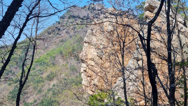 알기 쉬운 세(3) 코스 중 오늘 올라갔다 내려온 강선사 우측으로 비켜 올라가는 코스에는 무엇보다 가슴 설레는 짙푸른 북한강뷰를 가슴에, 눈에 가득가득 담을 수 있는 코스입니다. 좀 작지만 통천문을 지나가면 남향으로 자리 잡은 삼림욕장입니다. 나뭇가지 사이로 짙푸른 북한강뷰를 즐기며 삼림의 기운을 듬뿍 받을 수 있는 삼림욕장에서 잠시 쉬어가도 좋겠죠. 그리고 만나는 귕소는 바위산 정상 부근에 저만큼 큰 웅덩이(沼)가 있다니 믿어지지가 않습니다. 웅덩이에 물은 없었지만 물이 담길 수 있는 커다란 웅덩이가 바위산에 존재한다는 게 놀랍습니다. 드디어 눈에 번쩍 들어오는 '큰 바위 얼굴'!!, 감탄 아니할 수 없네요, 자연이 빚은 걸작품입니다. 더구나 이승만 초대 대통령 얼굴 모습이어서 '우남바위'로도 불리고 있어 더욱 신비롭기만 합니다.