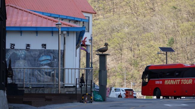 왼쪽은 강촌 역, 옛 강촌역에서 1.4km.