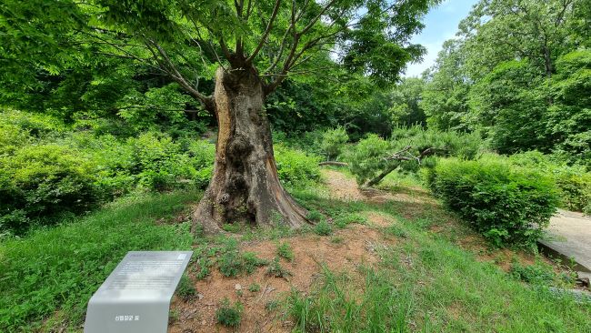 느티나무 옆 신도비의 문장공 신완은 장군의 현손(4대 후손)