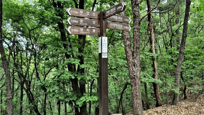 그런데 또 실망입니다. 이정표에는 무갑산, 관산, 앵자봉 같은 큰 산들만 표시되어 있네요.