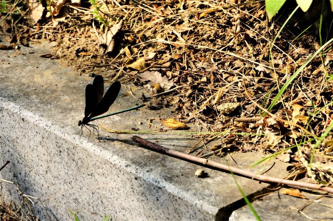 물가에 있어야 할 물잠자리가 길을 잃었나 봅니다. 메마른 자전거공원에 날아다니네요.