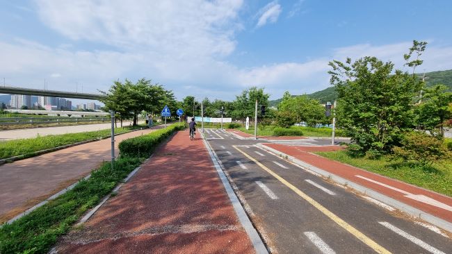 되돌아가는 길엔 둑방길에서 내려와 자전거길을 걸어가다가,