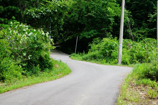 이 지점 삼거리로 되돌아와 왼쪽으로 거친 콘크리트 포장길로 올라가 보게 됩니다.