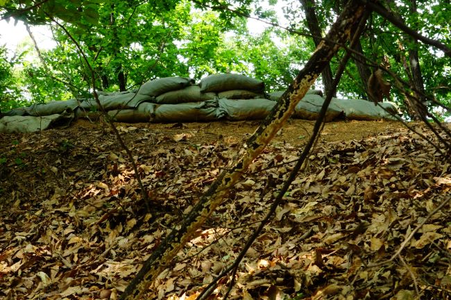 참호 모래주머니에 배낭 내려놓고 잠시 쉬어가기로 합니다.