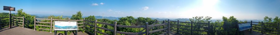 파노라마 뷰, 시야가 흐리지만 정상엔 사방이 막힘이 없이 뻥 뚫렸습니다. 보이는 건 산, 산, 산,