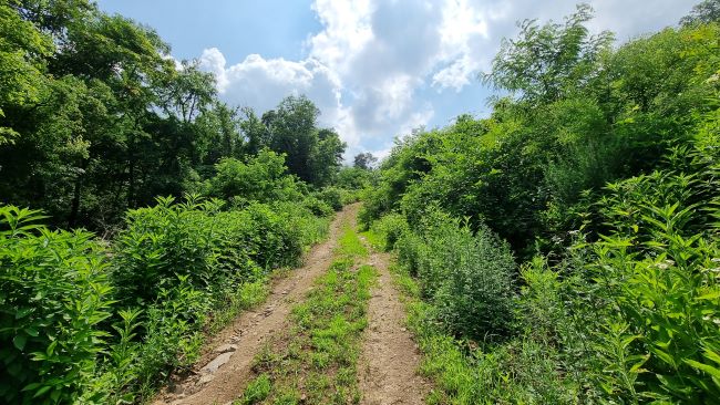 이어지는 길은 거친 임도, 사진에는 밋밋하지만 계속 만만찮은 오르막입니다. 초반에 고도를 확 높이는 코스인가 보네요.