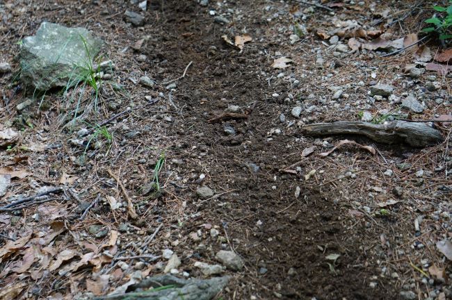 MTB 인기코스인가 보네, 산길에 타이어 자국이 선명합니다.